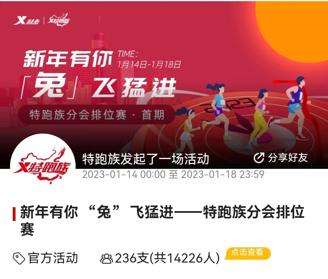 五、活动人员:限报名参加特跑族2023新年排位赛“兔”飞猛进活动,且线上步数超过1000步的特跑族东营分会会员。